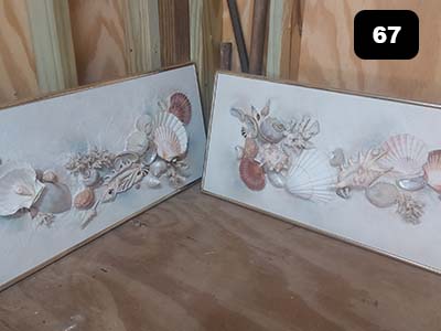 2 Beautiful 3d Shell Graphics done by Terry Duke of Shell Graphics of Panama City. All shells curated from Florida beaches. Each picture measures 24" by 12"